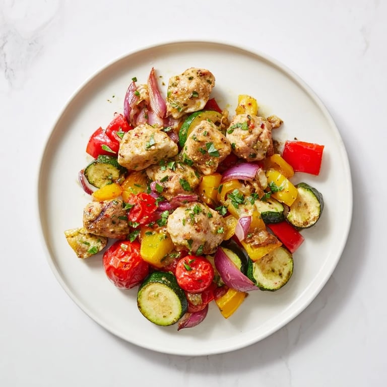 Pin to Board A vibrant, herbaceous weeknight dinner featuring tender chicken and roasted vegetables, all bathed in a zesty basil-lemon marinade. Perfect for a simple, one-pan meal with minimal cleanup.