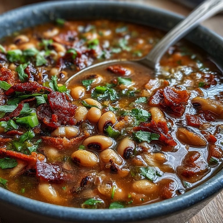 Pin to Board The smell of bacon sizzling in cast iron hits different on a chilly evening, especially when you know what's coming next. My neighbor brought over a pot of Texas black-eyed peas one January, and honestly, I was skeptical until the first spoonful hit my tongue—smoky, spiced, comforting in a way that felt almost dangerous. That night changed how I thought about humble ingredients and what you can build with patience and a big pot. Now whenever I make this, I'm chasing that exact feeling: the way the kitchen fills with cumin and smoked paprika, how the peas go from firm to creamy, and that moment when everyone gathers around asking for seconds.