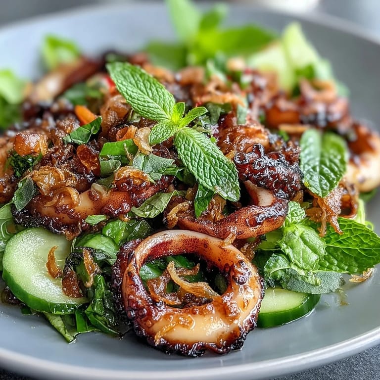 Pin to Board There's a particular moment at the night market in Bangkok when the vendors are hitting their stride—the sizzle of squid hitting the wok, the sharp tang of lime cutting through the humid air, and somehow the whole scene comes together on one plate. That's when I understood this salad wasn't just refreshing, it was alive. Now whenever I make it at home, I chase that same electric feeling: squid that's barely kissed by heat, a dressing so balanced it makes your mouth wake up, and all those fresh herbs doing their thing.