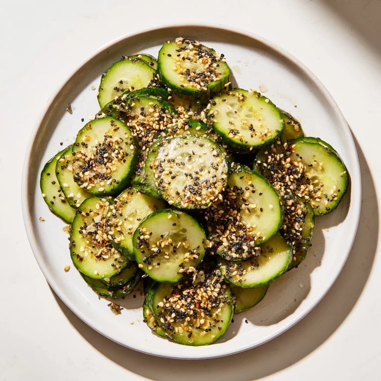 Pin to Board There's something almost absurdly satisfying about shaking a jar of cucumbers and watching them transform into a bright, snappy snack in under a minute. I discovered this particular combination on a lazy afternoon when I was hunting through my pantry and found that everything bagel seasoning sitting next to some chilled English cucumbers, and it just clicked—crisp, savory, and the kind of thing you can make while barely thinking about it.