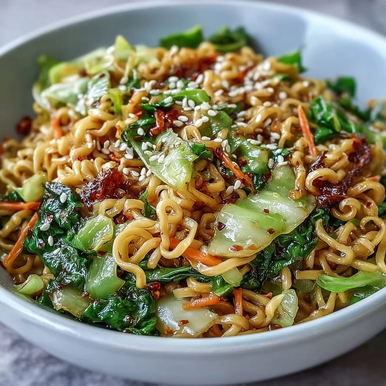 Pin to Board The steam rising from the wok on a Tuesday night after work, that sharp hiss when cold noodles hit hot oil. I threw this together one evening when the fridge was nearly empty, just a sad wedge of cabbage and a forgotten pack of ramen shoved in the back of the pantry. What started as desperation cooking turned into something I crave constantly now. The cabbage gets these crispy, caramelized edges that taste nothing like the boiled stuff I grew up avoiding.