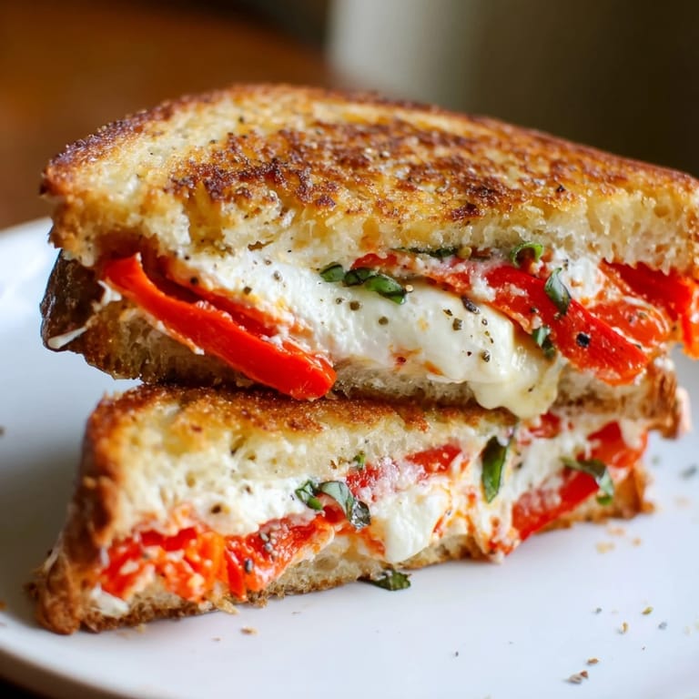 Pin to Board There's something magical about the moment butter hits a hot skillet and you catch that first whiff of toasting bread. I discovered this sandwich entirely by accident one rainy Tuesday when I had half a jar of roasted red peppers languishing in my fridge and a wedge of goat cheese that needed rescuing. What started as a desperate lunch became something I now make whenever I want to feel a little fancy without the fuss.