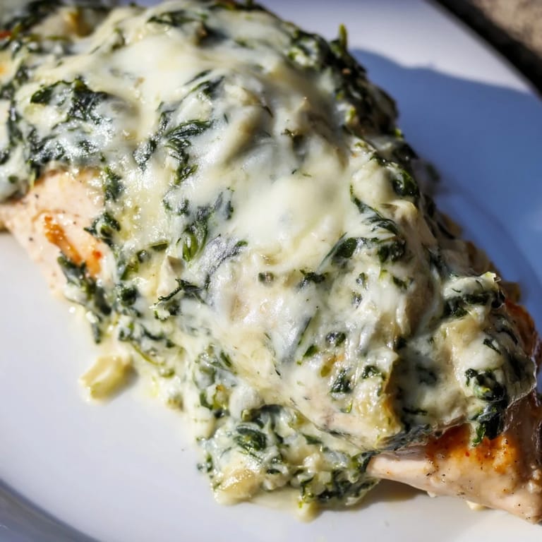 Pin to Board The smell of garlic and spinach wilting in a pan still takes me back to my first apartment kitchen, where I discovered that dip ingredients make an incredible chicken topping. I was trying to use up leftover spinach and half a can of artichokes, but somehow this combination became my go-to comfort dinner. That night, my roommate actually asked if I'd ordered takeout from the Italian place down the street.